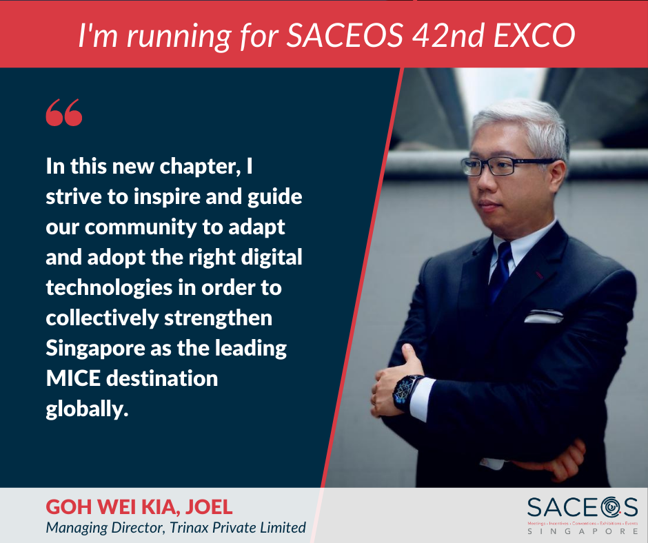 "With a global digital event outlook (a benefit of running Jublia with global clientele) and pioneering mindset into the fast evolving digital MICE space, I believe I bring along the tenacity and experience to leverage and uplift SACEOS initiatives to bolster, sustain and future proof events through innovation."